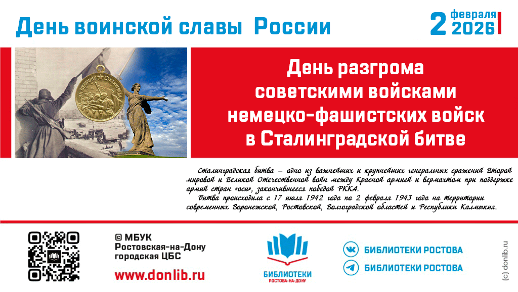 В библиотеках Ростова пройдут мероприятия ко Дню разгрома фашистских войск в Сталинградской битве