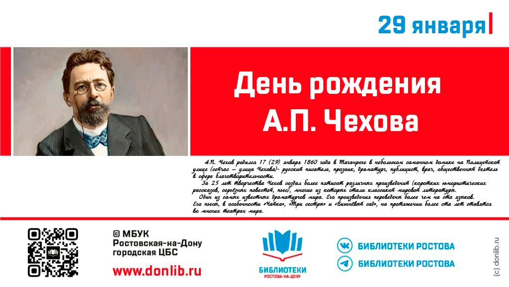 Ко Дню рождения А. П. Чехова в библиотеках Ростова пройдут мероприятия