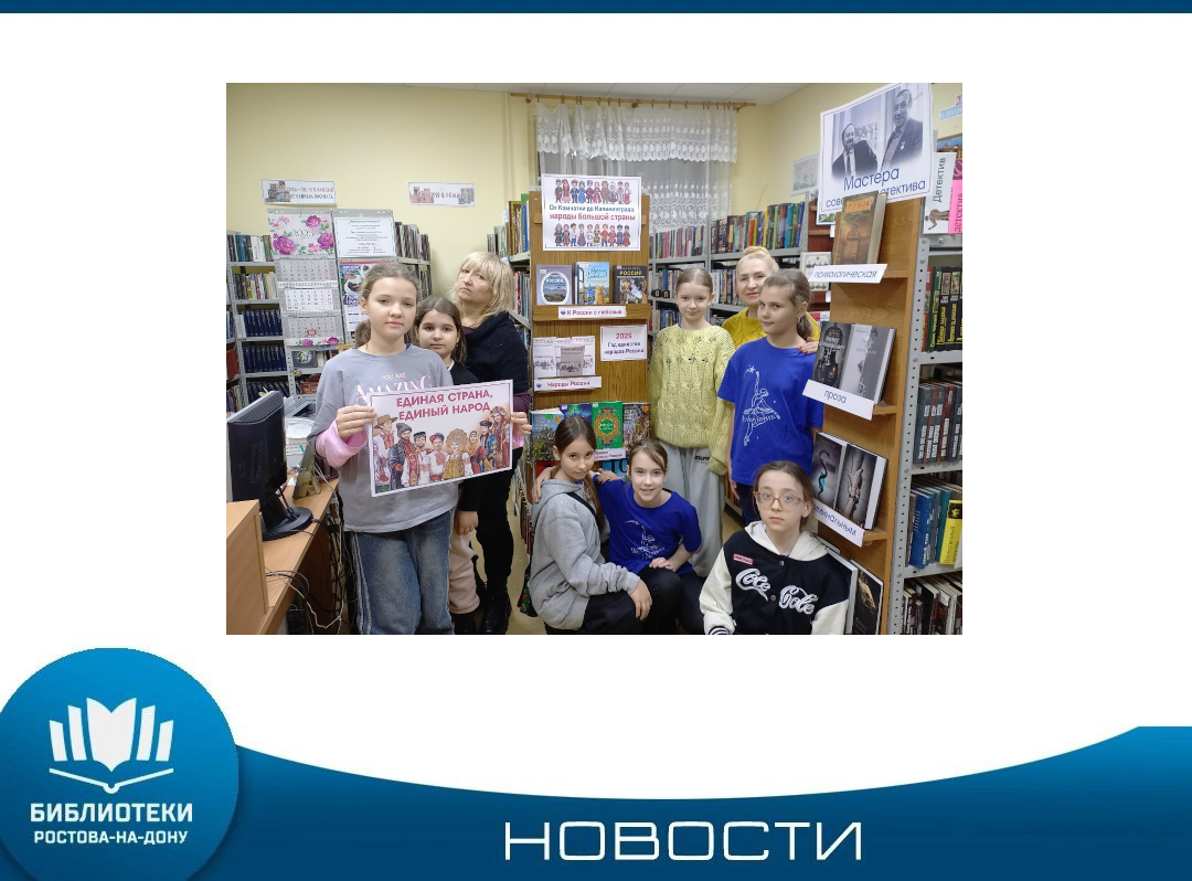 Специалисты Библиотеки имени А. Серафимовича для читателей библиотеки и учащихся ЦРТДиЮ Первомайского района был проведен день информации, посвященный 2026 году- году единства народов России «Единая страна-единый народ». В процессе участникам представили информацию о том, с какими событиями связано определение 2026 года - годом единства народов, кто был инициатором определения статуса года. В ходе мероприятия участникам рассказали о новых праздниках в России, в связи с годом единства народов, и о ...