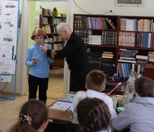 В мероприятии принял участие ветеран флота, педагог-отличник народного образования, член актива библиотеки Михаил Леонидович Рапопорт. В начале урока зав. филиалом Т.В. Дуденкова рассказала о библиотеке им. Грина, пригласила получить электронный читательский билет, вручила детям библиовизитки, представила Михаил Леонидовича Рапопорта.