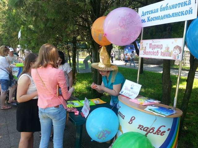Детская библиотека им. Космодемьянской приняла активное участие в мероприятии на площадке «Турнир знатоков книг». Участники отгадывали загадки, отвечали на вопросы «Литературной цепочки». На площадке действовала «Школа фокусов и загадок», в которой обучали секретам некоторых известных фокусов.