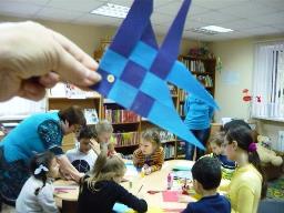 В занятие приняли участие девочки и мальчики от пяти лет и старше. Юные творцы учили правила безопасной работы с ножницами, осваивали азы складывания из бумаги. Затем под руководством Мастера изготовили красивых разноцветных рыбок. И хотя, все работали по одной схеме, у каждого получилась своя неповторимая поделка.