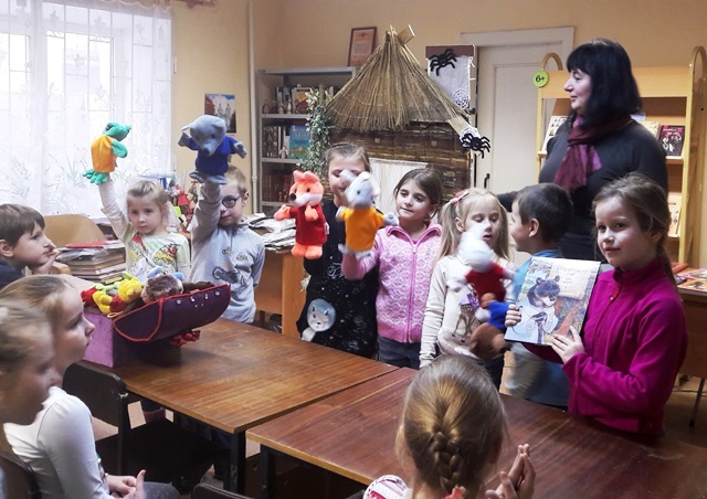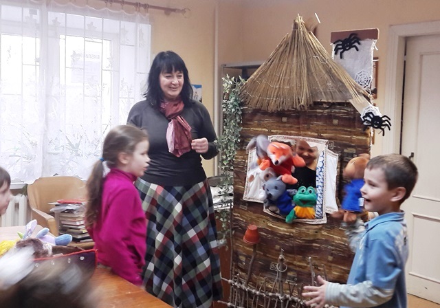 С огромным удовольствием гости библиотеки приняли участие в инсценировке русской народной сказки «Теремок».