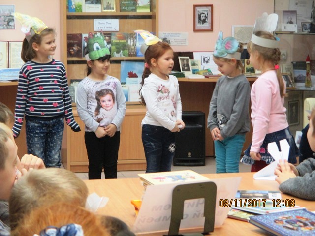 Девочки и мальчики назвали многих детских писателей и поэтов. Среди них звучало имя С.Я. Маршака, чей юбилей отметили недавно. Всю жизнь он был добрым другом детей. Встреча с его стихами происходит в раннем детстве. Многие поколения детей с удовольствием слушали и учили наизусть его детские стихи и сказки: «Мяч», «Усатый - полосатый», «Детки в клетке», «Кошкин дом». Ребята для показали для своих родных инсценировку «Сказки о глупом мышонке».