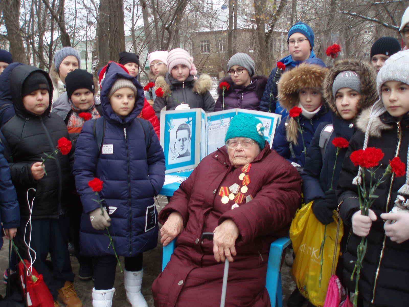 На уроке мужества присутствовала сестра Вити Черевичкина, Аксененко Анна Ивановна. Она вспомнила о том, как в такой же холодный как этот день, 28 ноября 1941 года, был зверски убит фашистами ее брат Витя Черевичкин за то, что отправлял донесения нашим войскам в Батайск с помощью почтовых голубей. А на следующий день, 29 ноября 1941 года, Ростов-на-Дону был освобожден.