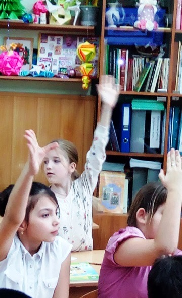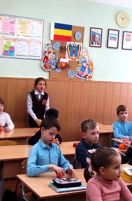 В ходе мероприятия библиотекарь провела викторину «Доска сказочных объявлений», с помощью которой ребята с удовольствием узнавали любимых героев. За правильный ответ школьники получали приз от Чебурашки - апельсин из ящика, в котором сказочный зверёк приехал из тропического леса в Россию.
