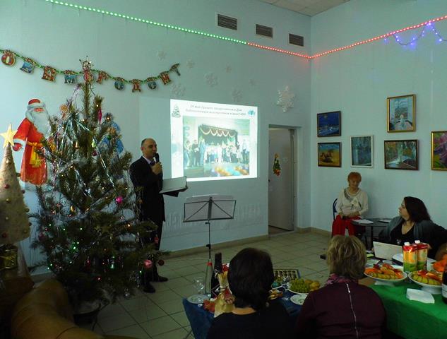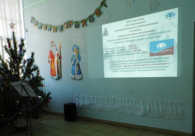 28 декабря в БИЦ им. Гагарина был организован торжественный предновогодний вечер для библиотечных специалистов РГЦБС. В праздничной остановке сотрудников муниципальных библиотек поздравила Начальник управления культуры Администрации г. Ростова-на-Дону Лисицына Людмила Павловна.