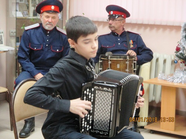 4 января состоялся концерт «Казачьи рождественские встречи на Дону». В концерте принял участие народный ансамбль казачьей песни «Сторонушка» под руководством атамана казачьего общества хутора Сергия Радонежского, есаула С.Г. Ермилова.