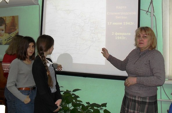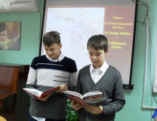 В ходе информационного часа ребята узнали об основных битвах Великой Отечественной войны; о том, что каждая битва, сражение, бой приближали советский народ к долгожданной Победе над врагом. Особое внимание было уделено Сталинградскому сражению и беспримерному героизму и стойкости, проявленному советскими бойцами в битве под Сталинградом.