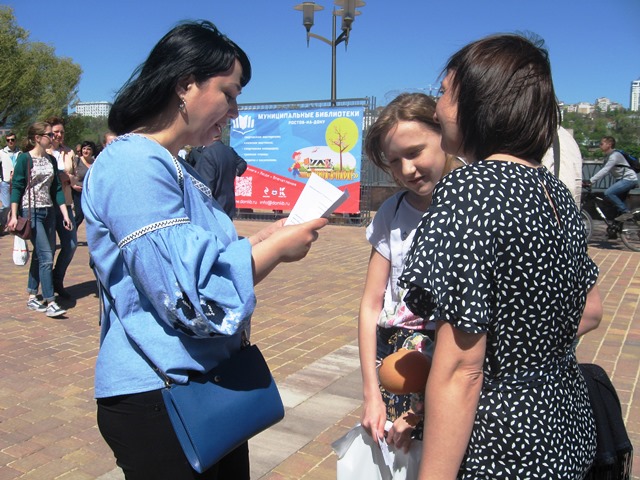 1 мая детская библиотека имени В.В. Маяковского приняла участие в литературном празднике «МИР! МАЙ! ЧИТАЙ!», который состоялся в рамках городской программы «Книга в парке» в новом парке культуры и отдыха «Левобережный». Все посетители парка, посетившие его в день открытия, смогли принять участие в литературном празднике библиотеки «Весна идёт!».