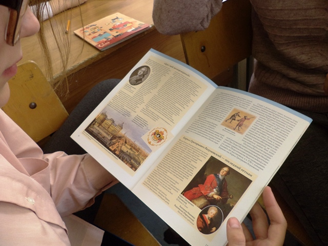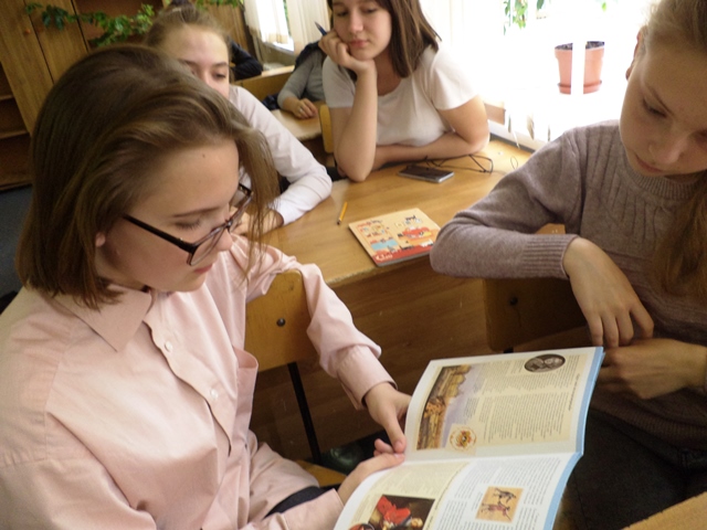 Гимназистам была предложена книжная выставка из фонда читального зала «Венценосная семья», посвященная русским государям вообще и Николаю II в частности. В конце мероприятия учащимся были розданы информационные буклеты, выполненные сотрудниками читального зала «Царствование Императора НиколаяII».