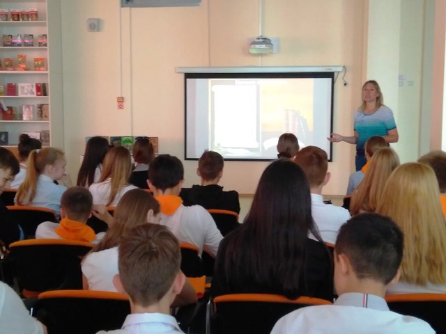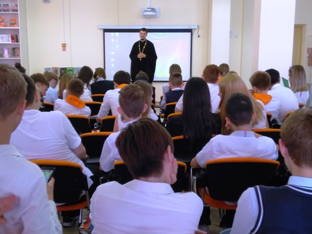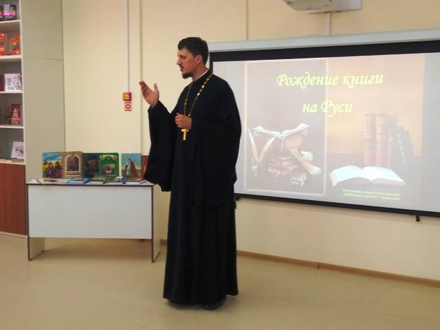 Слушателям была показана презентация «Рождение книги на Руси» и рассказано об истории праздника, об «учителех словенских» Кирилле и Мефодии и о понятии «человек культурный» в современном обществе. В финале мероприятия от Прихода Преподобного Сергия Радонежского в фонд школьной библиотеки были подарены интересные книги.