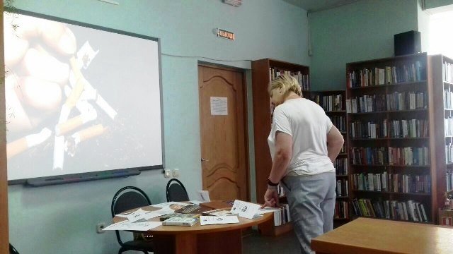 Присутствующим было предложено раскрасить органы курящего человека, которые больше всего подвергаются негативному воздействию табачного дыма. Желающие посмотрели видеоролик и познакомились с книгами на выставке литературы по теме мероприятия. Для закрепления материала всем раздали информационные буклеты.