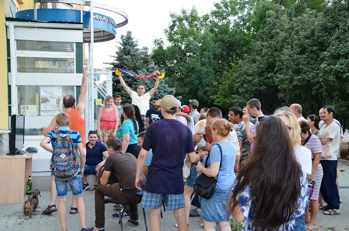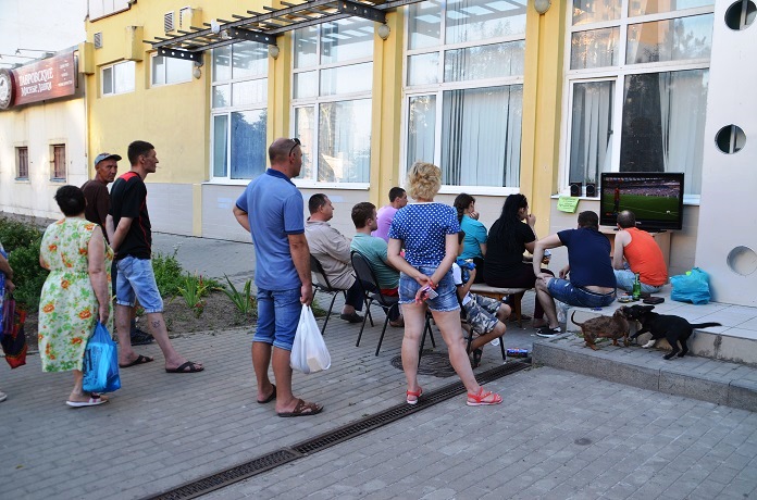 Как всегда, на матч нашей команды собралось и прибывало в ходе матча множество болельщиков разного возраста: дети в основном разместились на «Космос-Арене» в читатльном зале и следили за матчем на большом экране, а взрослое население микрорайона в «космической» фанзоне на прилегающей территории у телеэкрана, установленного на фасаде.