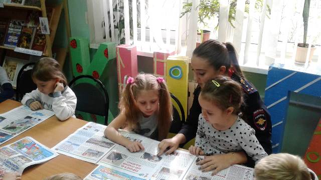 В Центральной городской детской библиотеке имени В.И. Ленина состоялась встреча воспитанников детского сада №256 с инспектором ГИБДД Е.С. Шматко.