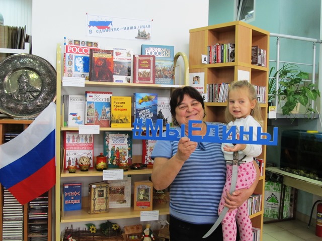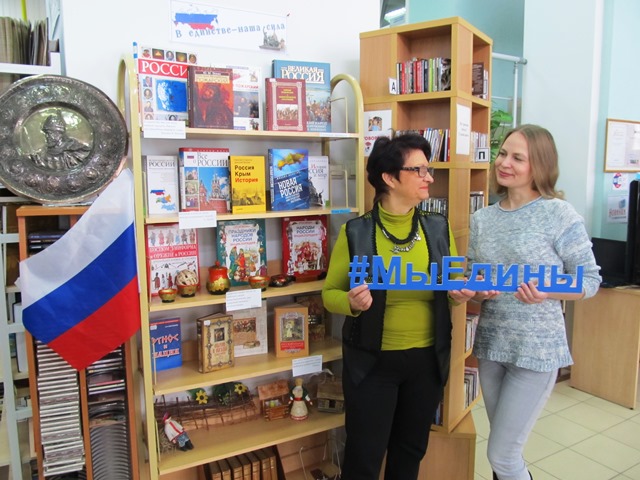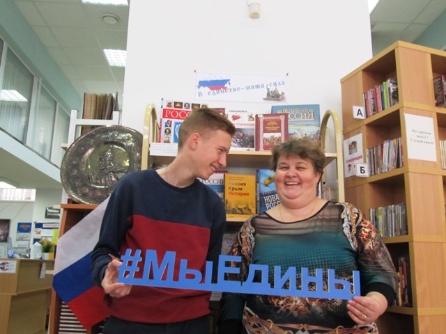 Посетителям библиотеки было предложено не только познакомиться с представленными на выставке книгами, но и сфотографироваться с хэштэгом #Мыедины.