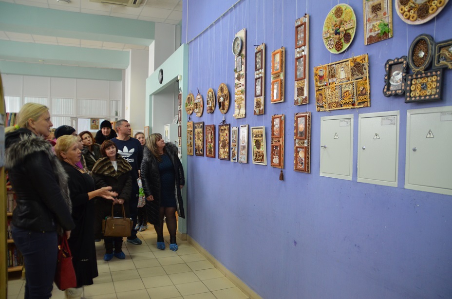 Ранее состоялось открытие выставки авторских работ декоративно-прикладного творчества И. Ковзиридзе «Рукотворный мир чудес». Автор представила свои работы, рассказав пришедшим на открытие о маленьких секретах своего мастерства – это материалы, различные предметы утратившие своё применение в быту, на которые и не подумаешь использовать для создания художественных произведений, а так же о том, что творчество и создание прекрасного это лучший досуг для человека.