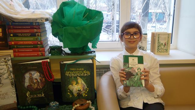 К 140-летию со дня рождения великого русского сказочника Павла Петровича Бажова в детской библиотеке им. В.В.Маяковского организована книжная выставка-инсталляция «Чародей малахитовых былей» по мотивам сказов «Серебряное копытце», «Каменный цветок», «Малахитовая шкатулка».