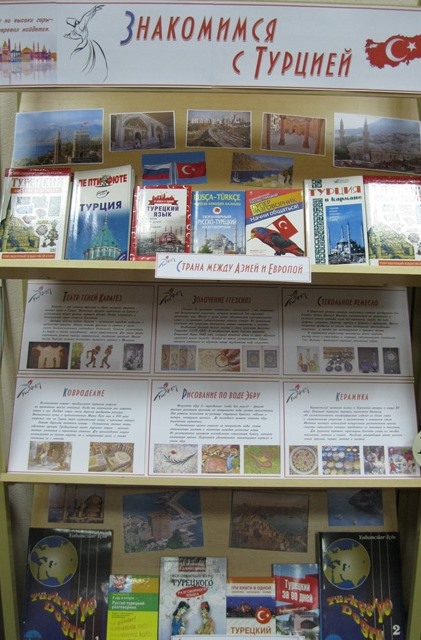 Для пользователей представлены страноведческие издания о Турции, учебные пособия для самостоятельного изучения турецкого языка. Экспозиция будет интересна всем, кто хочет познакомиться с историей и культурой этой древней страны.