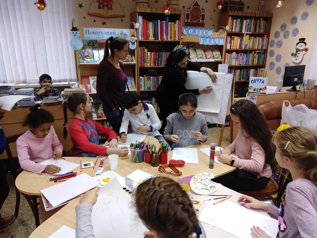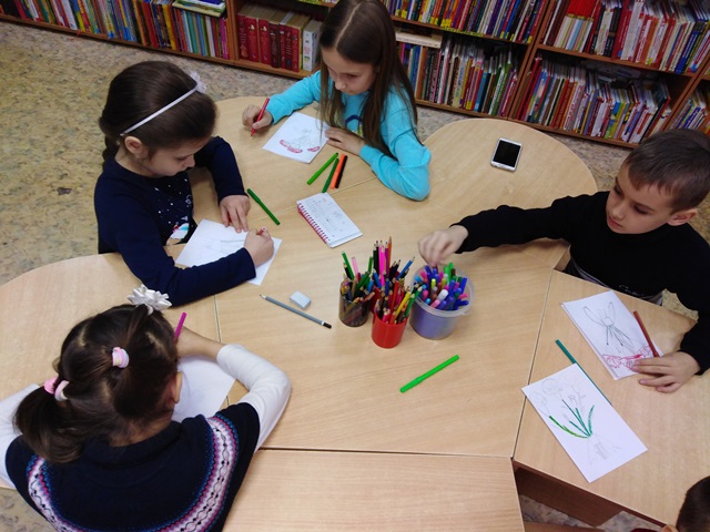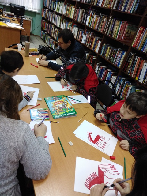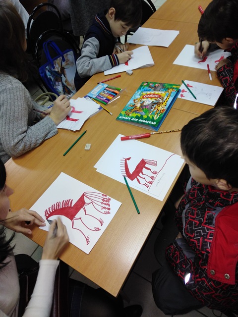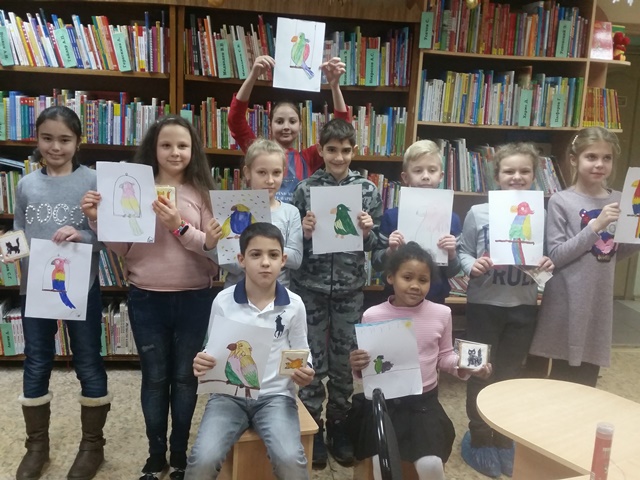С помощью изданий по рисованию, представленных в фонде библиотеки, прошел мастер-класс «Рисуем дружно». Красками, карандашами и фломастерами ребята нарисовали ярких попугайчиков.