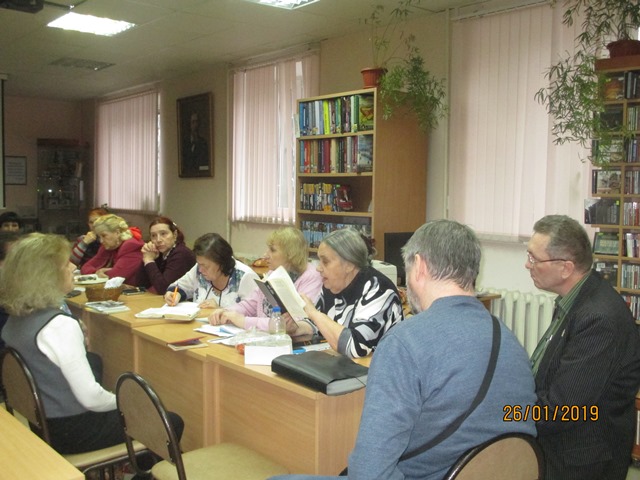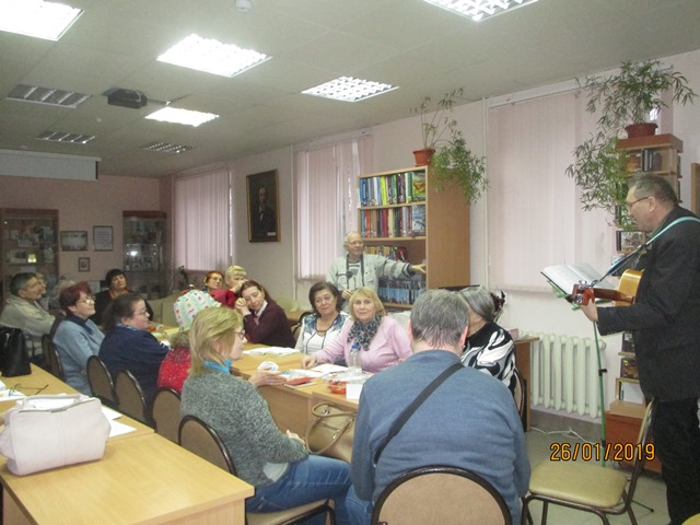 Круглый стол открыла Людмила Михайловна Кузнецова сообщением о биографии и литературном достоянии Р. Бёрнса, шотландского поэта, исполнителя своих стихов под музыку.