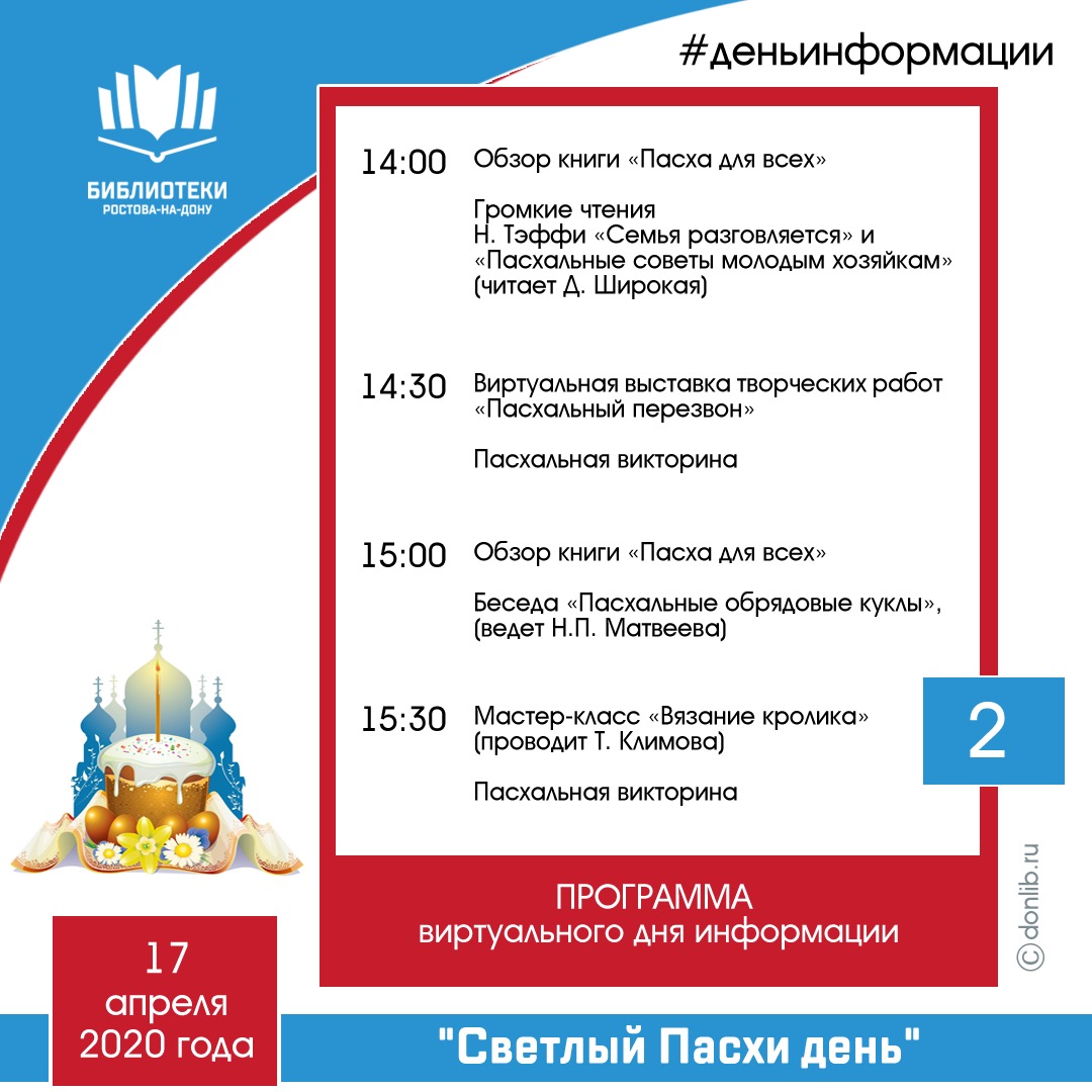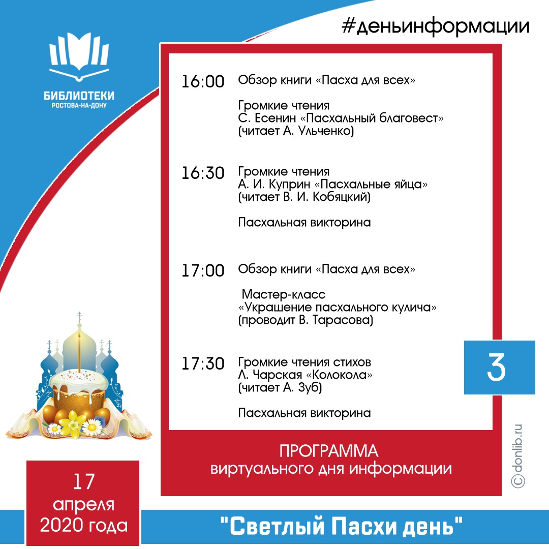 17 апреля МБУК Ростовская ЦБС на нашей странице в социальной сети «В Контакте» проведет виртуальный день информации. Начало в 12:00.