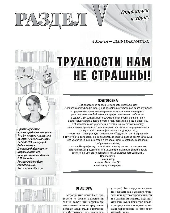 3. Васильева, К.А. Трудности нам не страшны // Читаем, учимся, играем. – 2020. – №12. – С. 58-62.