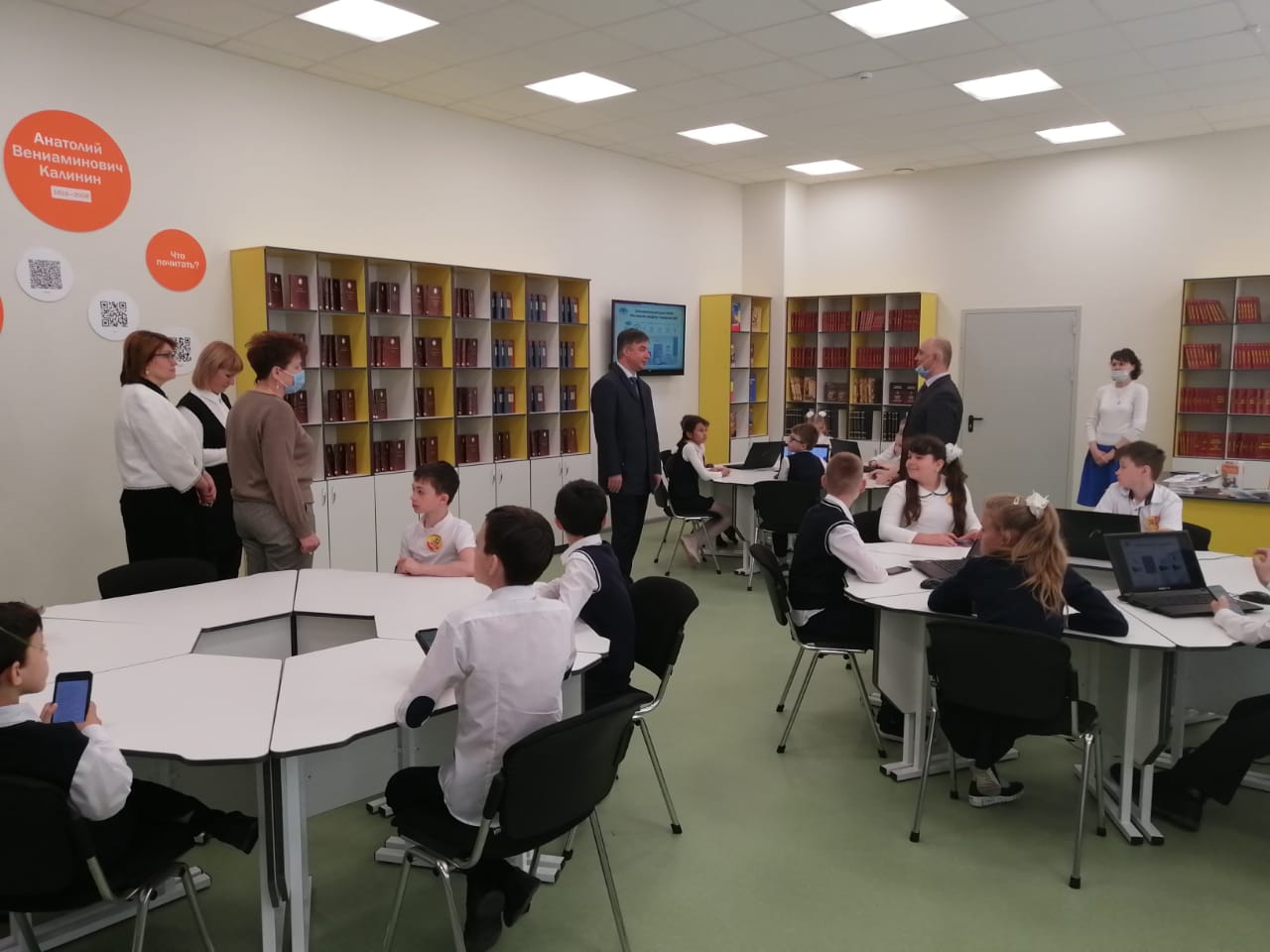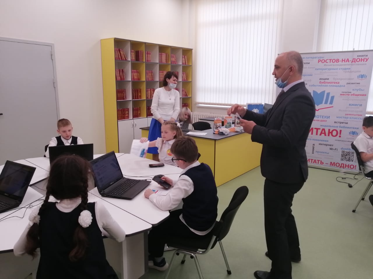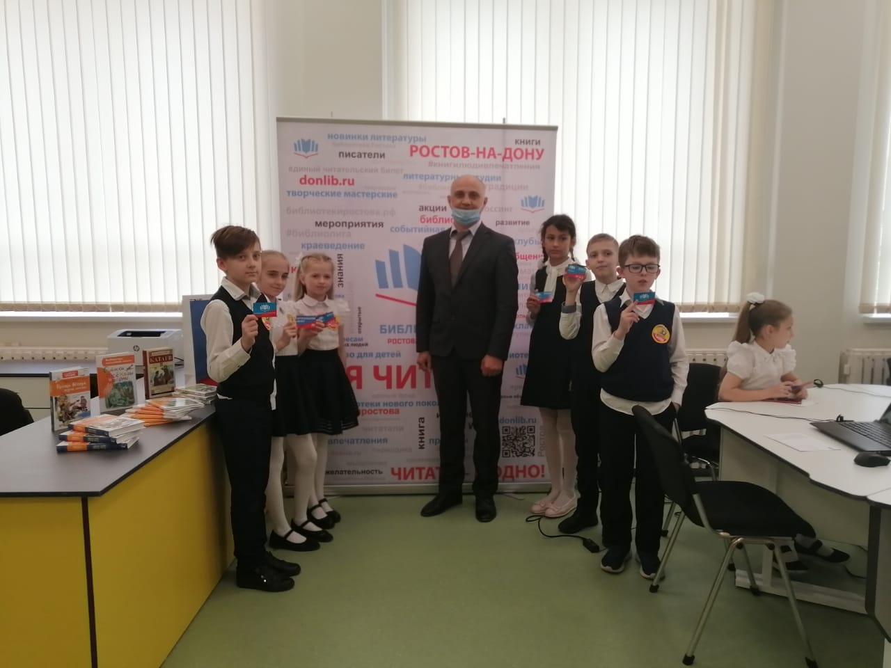 Для обучающихся 4 класса в обновлённой библиотеке школы был проведён библиотечный урок «Электронные ресурсы и услуги библиотек города». Ребятам рассказали о едином электронном читательском билете и его возможностях, представили электронный проект «Библиотека в кармане», научили азам поиска книг в едином электронном каталоге библиотек Ростова.