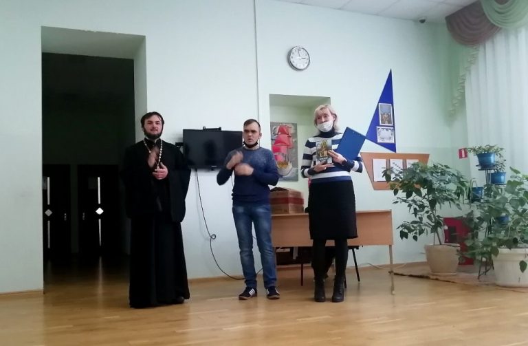 Затем сотрудники читального зала Центральной городской библиотеки имени М. Горького МБУК Ростовской-на-Дону ЦБС, ведущие совместно с храмом работу с ростовскими инвалидами по слуху, рассказали школьникам о святом благоверном князе Александре Невском и подарили библиотеке школы книгу об этом святом.