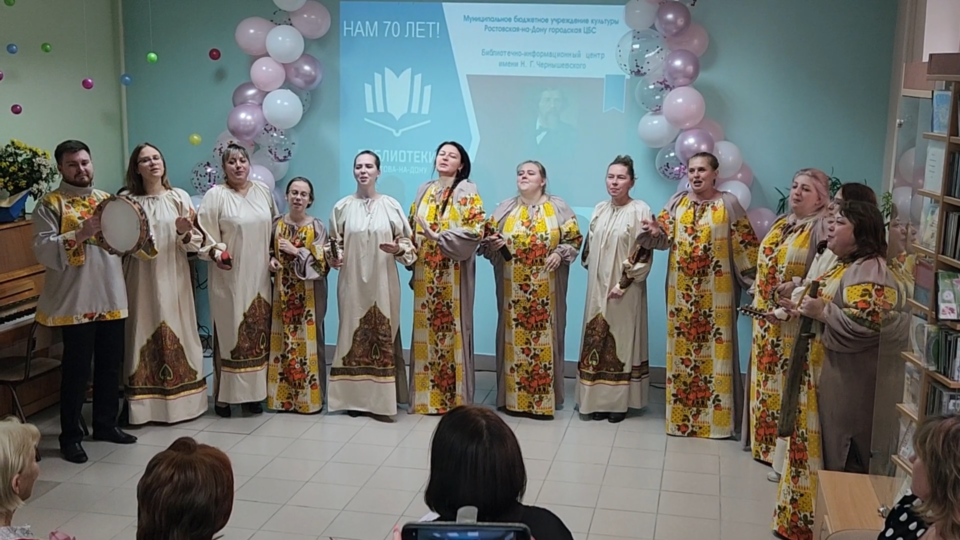 Дружный и творческий коллектив БИЦ имени Н. Г. Чернышевского поблагодарил гостей за прекрасный вечер, за многолетнее и плодотворное сотрудничество и в заключении торжества подарил участникам мероприятия музыкальную открытку «Нам 70!».