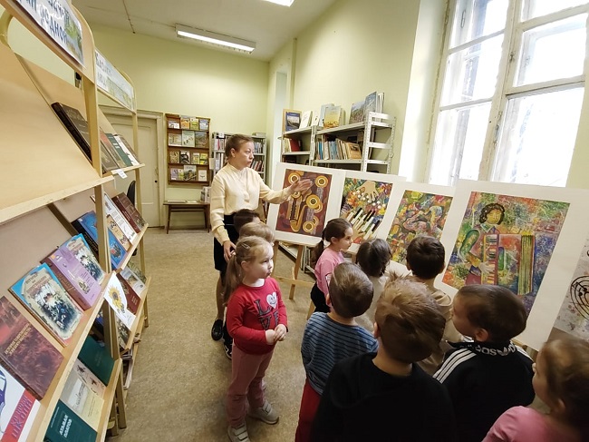 В завершение встречи ребята познакомились с творчеством детской художественной школы им. А.С. и М.М. Чиненовых, с выставкой работ детей, представленных в стенах библиотеки. Ребятам очень понравились их яркие, необычные картины.