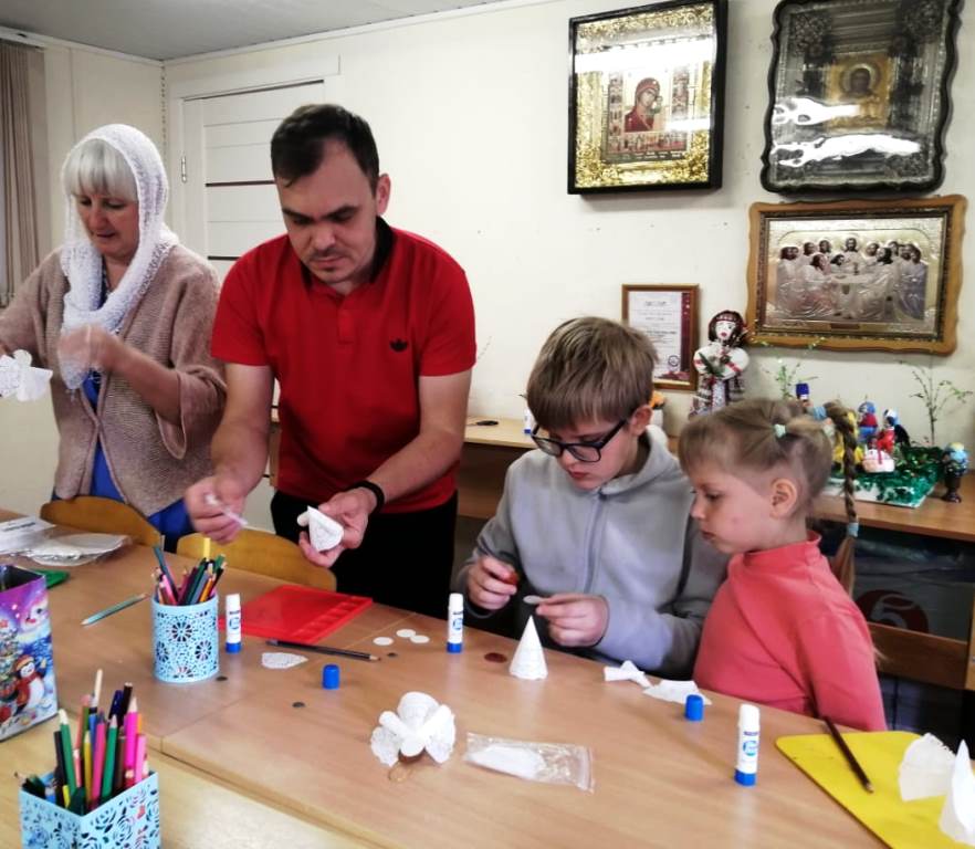В завершение мероприятия ребята совместно с преподавателями и специалистом читального зала участвовали в акции «Подарок для бойца» — делали своими руками объемных ангелов из бумаги. Эти поделки будут переданы раненым участникам СВО, которые проходят лечение в госпитале.