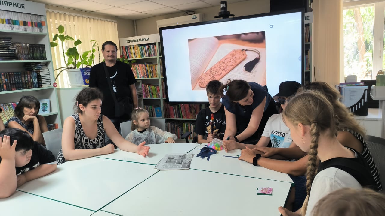Специалисты общественной организации инвалидов Советского района города Ростова-на-Дону совместно со специалистами библиотеки показали ребятам кукольный театр по мотивам русской народной сказки «Маша и медведь» и провели мастер-класс по изготовлению книжной закладки.