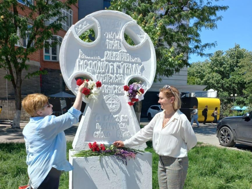 В этот день специалисты Библиотек Ростова возложили цветы к поклонному кресту «Кириллу и Мефодию».