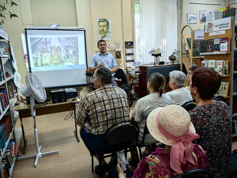 Посетили библиотеку, чтобы послушать об истории Крещения Руси постоянные читатели библиотеки, а также молодежь храма преподобного Серафима Саровского и воспитанники воскресной школы великомученика Георгия Победоносца.