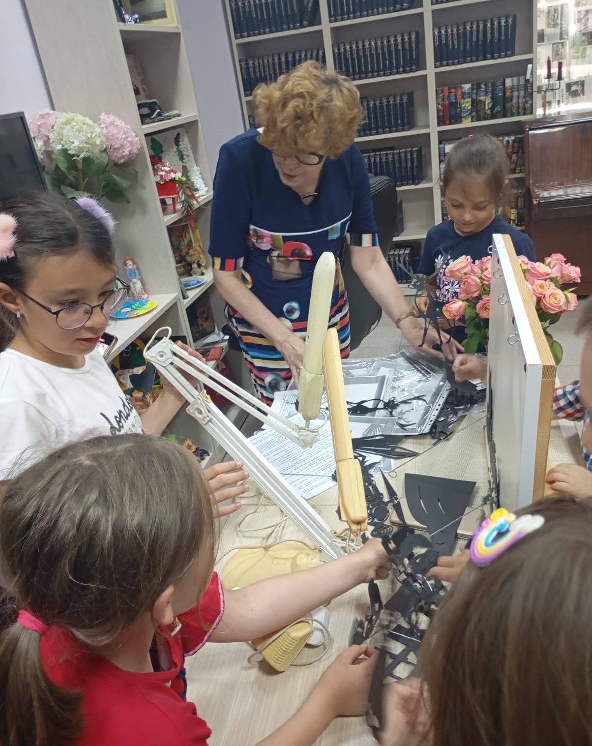 Специалист библиотеки рассказала ребятам о такой разновидности театрального искусства, как театр теней. Это очень древний театр, настолько древний, что уже невозможно с точностью установить, когда он появился. Считается, что это искусство зародилось в Азии, скорее всего, в Китае, а затем распространилось по миру. В 1700-х годах искусство театра теней стало стремительно расползаться по Европе, спасибо за это французским и английским путешественникам, увидевшим диковинку в Китае и спешно решившим заработать на этом у себя на родине. А вот в современном Китае искусство теневого театра находится на грани исчезновения, китайские мастера даже требуют внести театр теней в список объектов мирового наследия ЮНЕСКО. В России существует множество организаций и театральных трупп, организующих специализированные представления театра теней для детских праздников.
