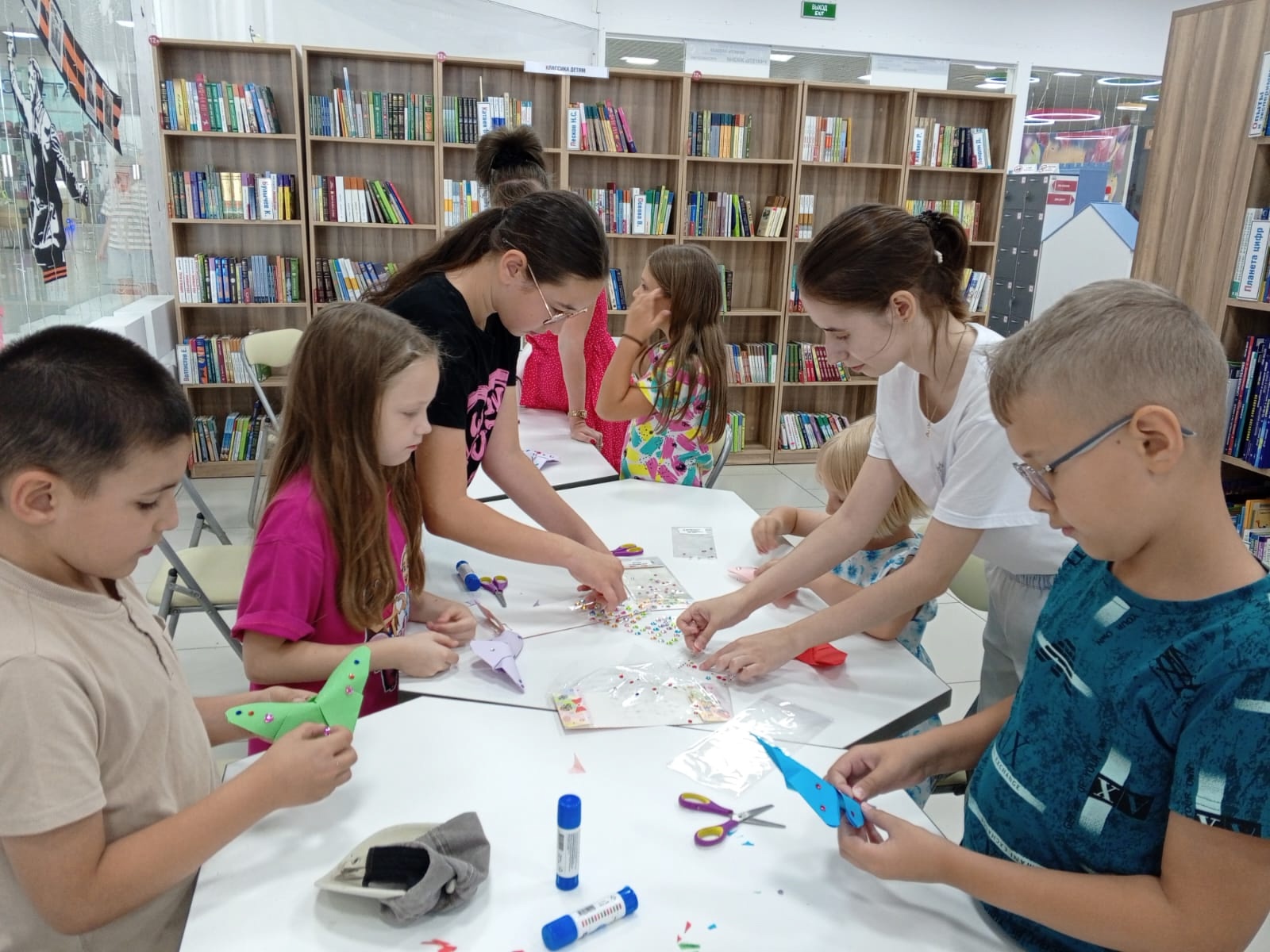 В завершение мероприятия дети сделали поделку в технике оригами с помощью цветной бумаги и страз.