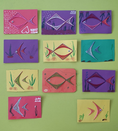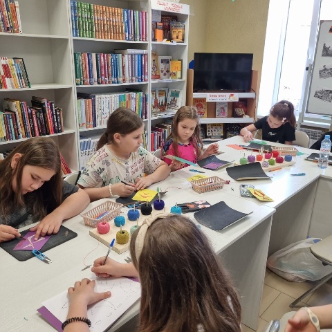 В процессе мастер-класса библиотекарь рассказала участникам о разнообразии рыб, их строении и повадках. Ребята рассмотрели иллюстрации. Вспомнили уже известные навыки вышивания, подобрали цветовую гамму для своих работ. В результате получились яркие и красочные рыбки.