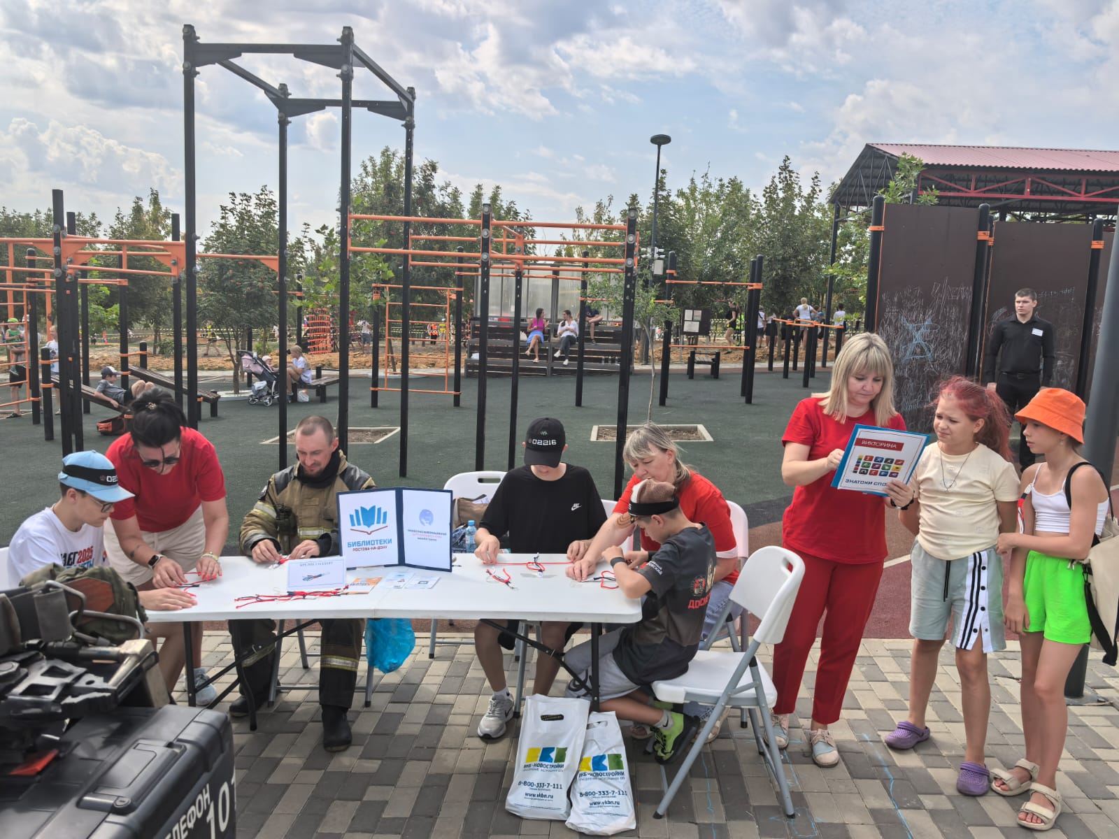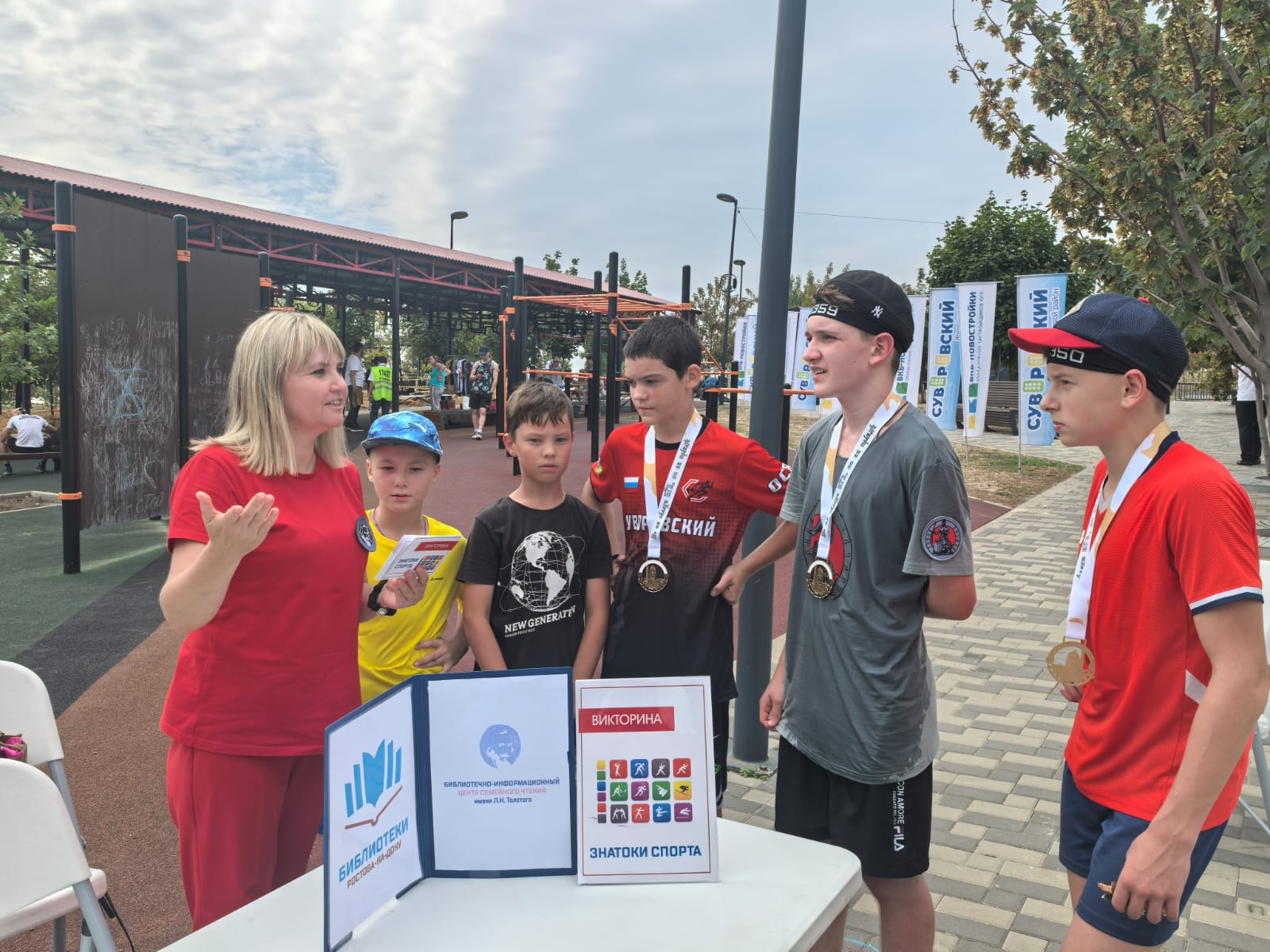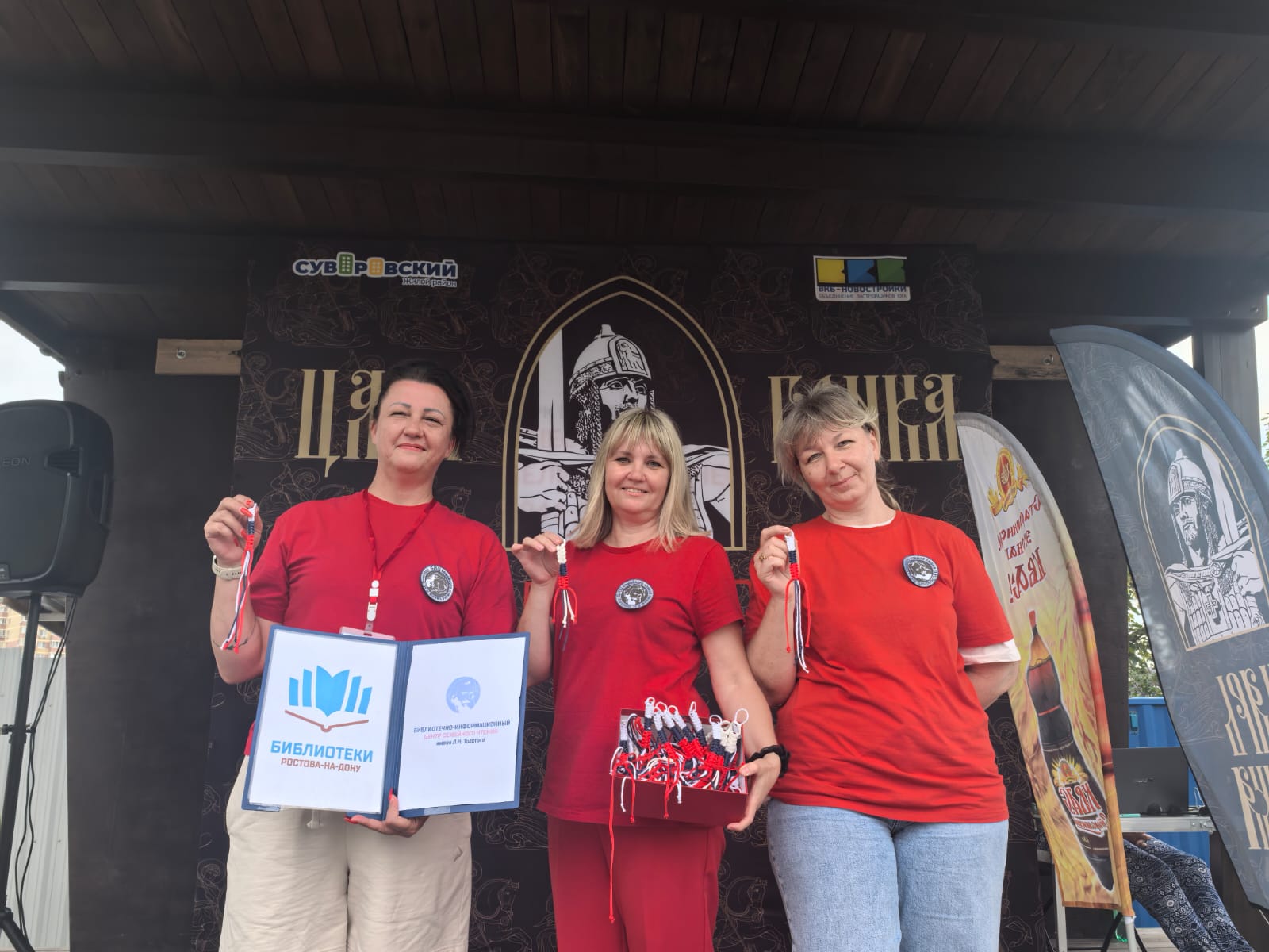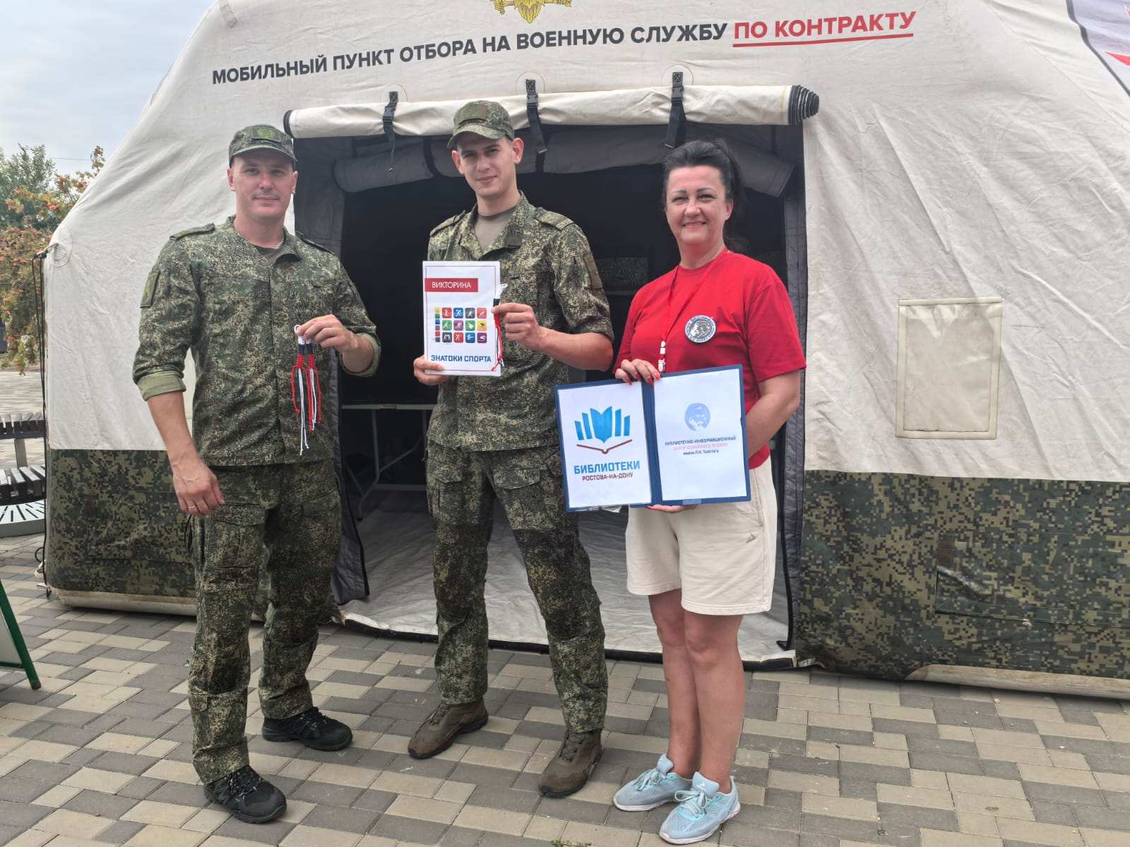 В День физкультурника специалисты Библиотечно-информационного центра семейного чтения имени Л. Н. Толстого приняли участие в проведении мастер-класса «Браслет солдату» и викторины «Знатоки спорта» в парке «В честь 70-летия Победы в ВОВ» во время проведения «ЦАРЬ Гонки».