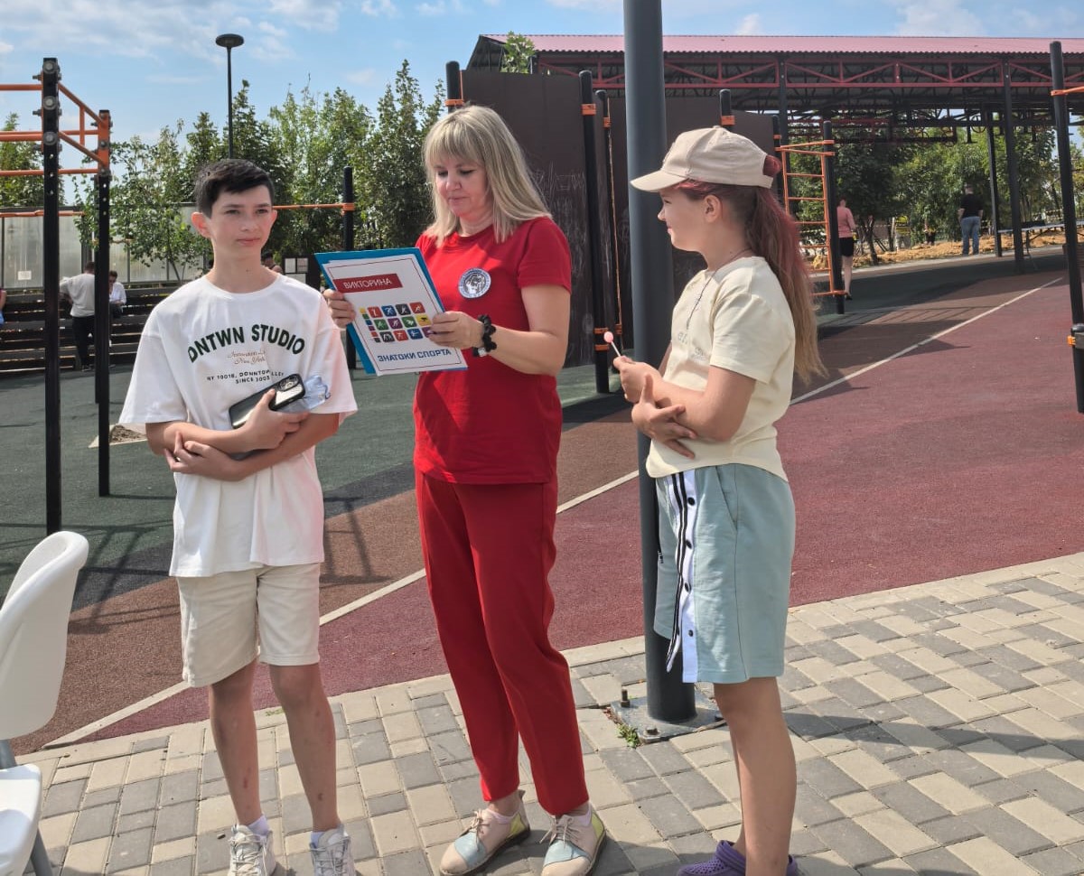 Квест состоял из нескольких этапов. Первый этап начался с увлекательной викторины, где дети отвечали на вопросы о спорте и физической активности.