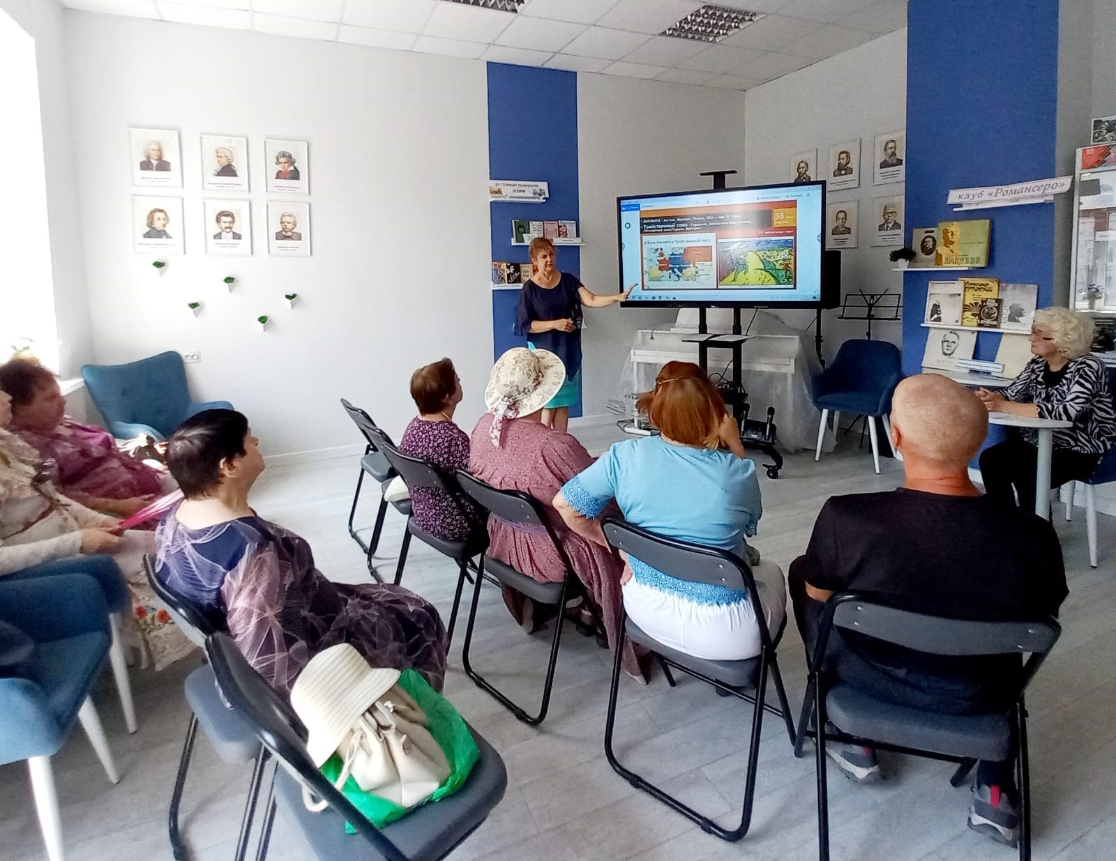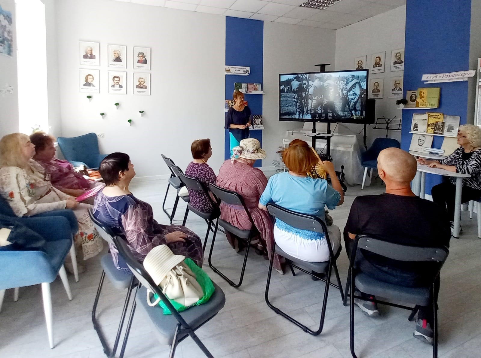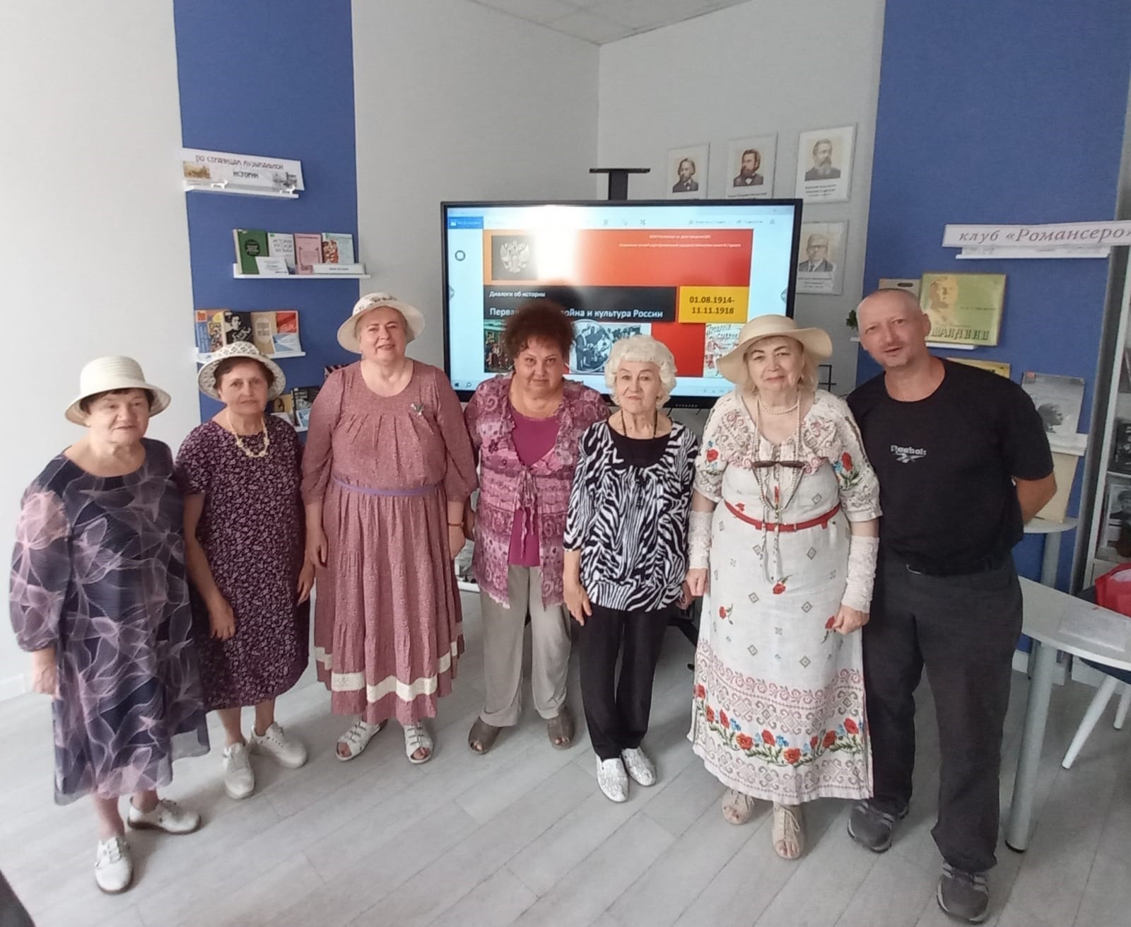 Заведующая музыкально-нотным отделом Центральной городской библиотеки имени М. Горького подготовила презентацию «Первая мировая война и культура России». Вместе с председателем клуба Людмилой Николаевной Донской озвучили страницы истории, цифры статистики, а также участники клуба в диалоговой форме высказали своё мнение об исторических параллелях.