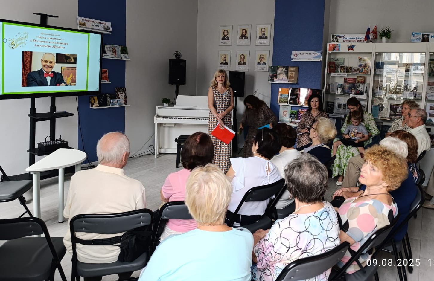 В начале мероприятия прозвучал видеофрагмент рок-оперы композитора Александра Журбина и драматурга Юрия Димитрина «Орфей и Эвридика». Заведующий сектором абонемента музыкально-нотного отдела Беспалова Лариса Геннадьевна кратко рассказала о юбиляре. Зрители с интересом узнали о наиболее важных вехах из жизни Александра Журбина и о его творческом пути. Был представлен фрагмент передачи «Вокруг смеха» 1985 года.