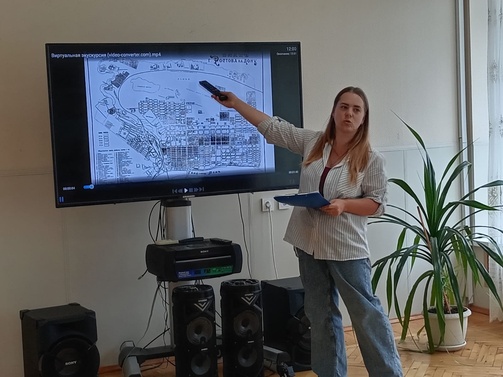 Для участников была подготовлена – виртуальная экскурсия по центру города, по улице Большой Садовой. Присутствующие познакомились с архитектурной историей города, узнали о том, какие интересные дома и постройки были здесь возведены, кому они принадлежали, как выглядели раньше и как выглядят сейчас. Также вспомнили о зданиях, которые не уцелели и в наши дни о них осталась только память.