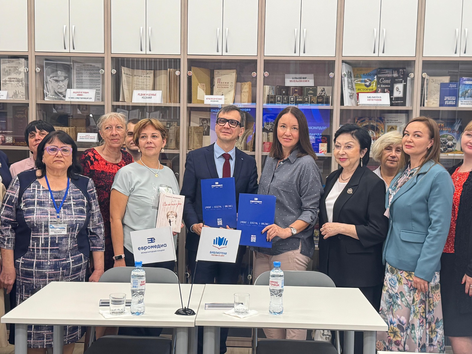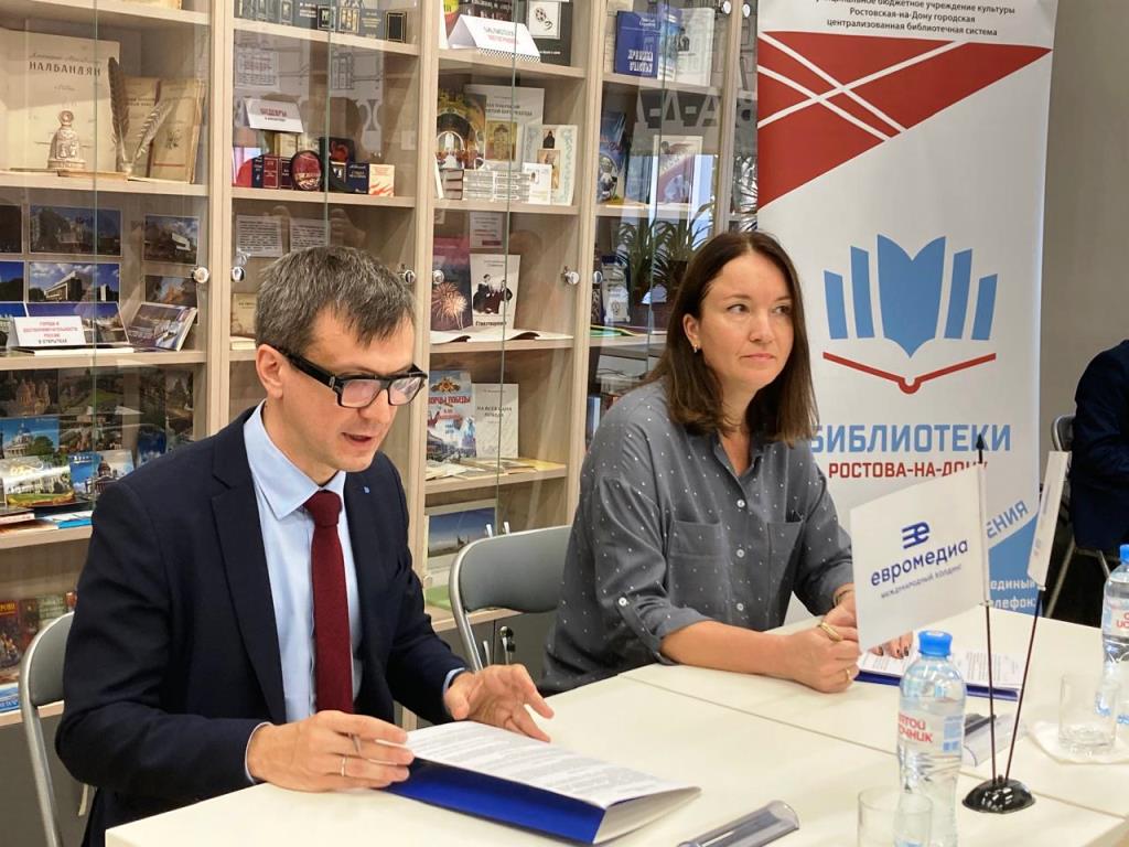 На торжественном открытии выставки присутствовали: заместитель директора по основной деятельности МБУК Ростовская-на-Дону городская ЦБС Наталья Вершинина, директор «ЕВРОМЕДИА» (ООО «ЕВРОМЕДИА») Владимир Денисов, ведущие специалисты международного холдинга «ЕвроМедиа», а также библиотечные специалисты МБУК Ростовской-на-Дону городская ЦБС.