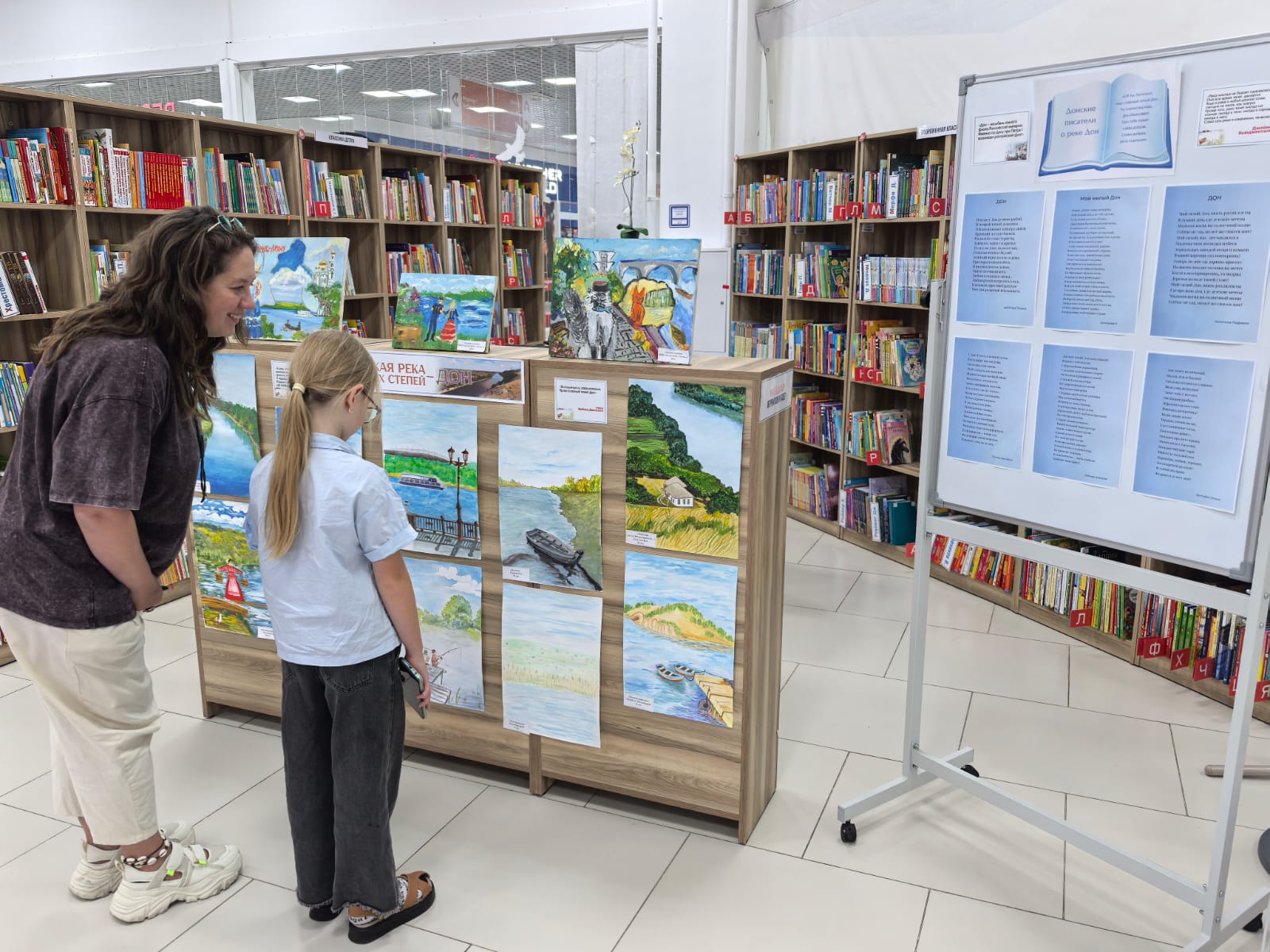 На книжной экспозиции «С днём рождения, любимый город!» собраны издания об истории, культуре и людях Ростова-на-Дону, а рядом расположилась выставка рисунков юных читателей «Великая река южных степей – Дон», где детскими глазами отражена красота великой реки.