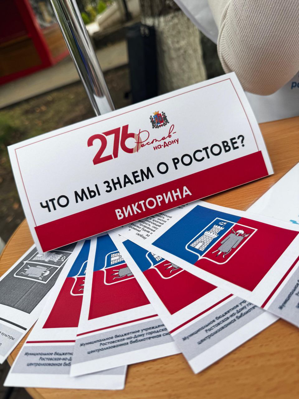 Викторина «Что мы знаем о Ростове?», посвящённая 276-летию Дню города Ростова-на-Дону, стала настоящим испытанием для знатоков истории и культуры города. Участники с азартом отвечали на вопросы, демонстрируя свои знания о достопримечательностях, знаменитых людях и интересных фактах из жизни Ростова.