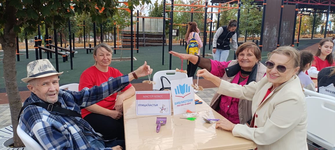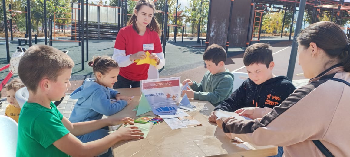 Все желающие могли своими руками создать уникальные сувениры: закладку для книг, символическую «Рыбку Дона» в технике оригами и «Птицу счастья» из жгута — знаки доброты и надежды. В течение праздника участники с энтузиазмом играли в настольную игру «Памятные места Ростова?на?Дону» и различные викторины углубляя знания о городе и природе.