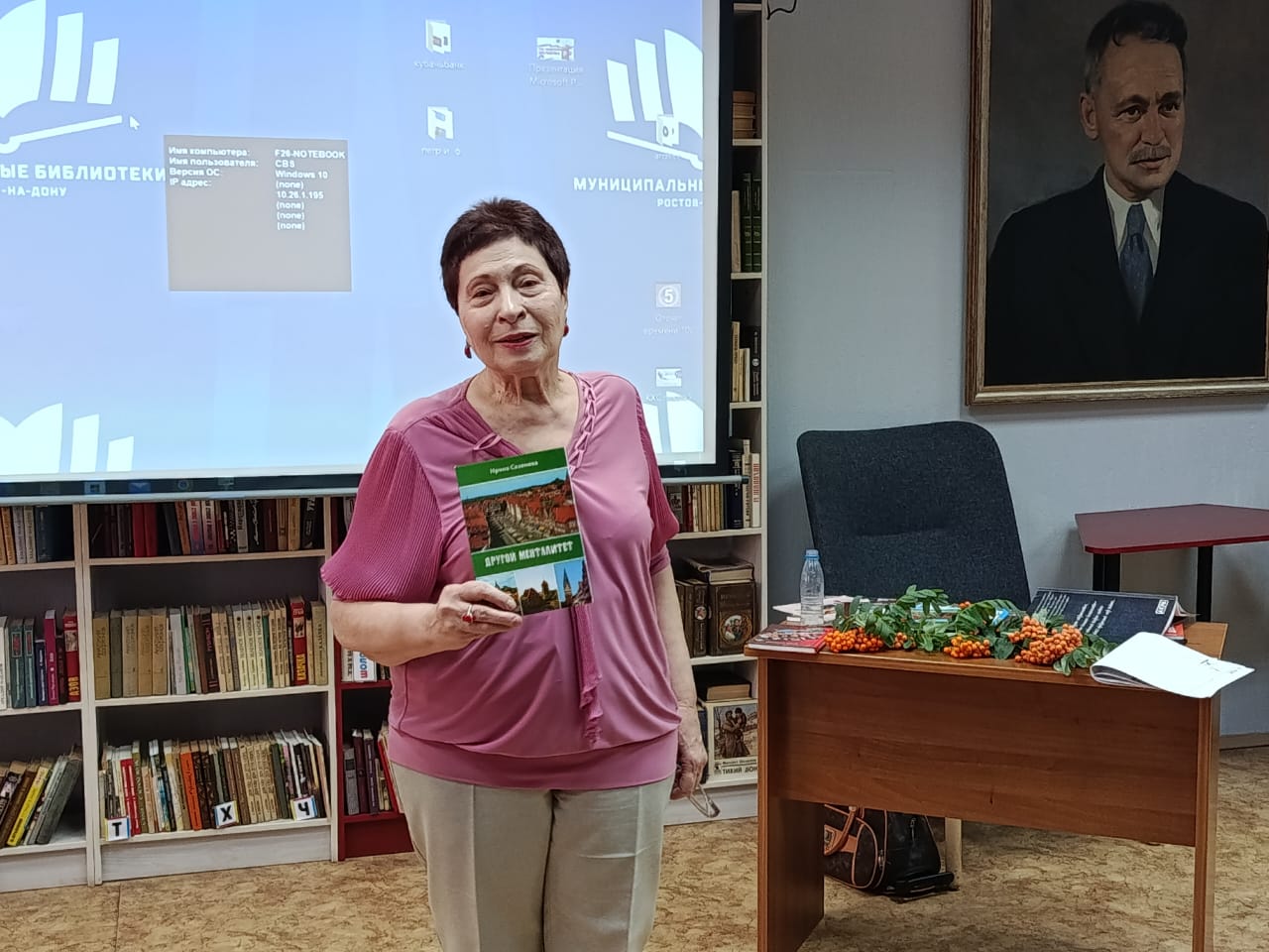 Также автор представила свою новую книгу «Другой менталитет». В основе книги– современная Германия глазами русского человека. Героине рассказов приходится на протяжении многих лет ездить в эту страну для встречи с дочерью и внуками. Поездки эти во многом приятны и интересны – радость общения с родными, путешествия, знакомство с культурой Европы. Но как смириться с особенностями чужого менталитета, несовместимыми с российскими нравами и традициями?..
