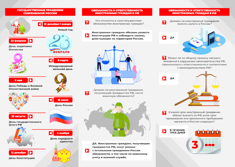 Наряду с культурными и историческими аспектами, мигрантам необходимо знать свои права и обязанности, а также основные законы, действующие на территории РФ. Это позволит им защитить себя от возможных злоупотреблений и избежать правонарушений. Информированность о миграционном законодательстве, трудовых правах и других важных аспектах жизни в России поможет им адаптироваться и успешно интегрироваться в российское общество.
