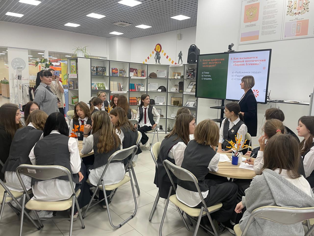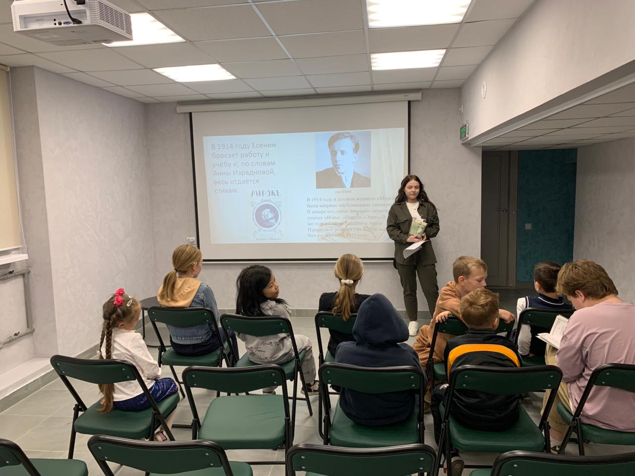 Для учащихся 4 класса ростовской школы №7575» в БИЦ семейного чтения имени Л. Н. Толстого прошел литературный час «Звучат Есенинские строки», посвящённый 130-летию со дня рождения Сергея Есенина.